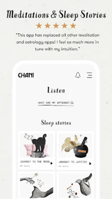 CHANI is your personalized guide through life’s ups and downs. Designed to make astrology both accessible and useful, the app combines ancient astrological wisdom with meditation and mindfulness to help you foster your relationship with the sky and support your wellbeing. Because we believe that when you know your birth chart — aka your life’s blueprint — you’re better equipped to unlock your personal power and life's potential.