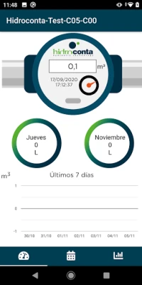 Deméter APP da la posibilidad de visualizar gráficas de consumo y valores de interés, como la próxima fecha riego, el caudal instantáneo o la última hora de comunicación de tu terminal.
