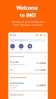 Manage your money easily and securely – anytime, anywhere. With the ING App, you handle all your banking needs for both personal and business accounts. From checking your balance to investing: everything in one app.