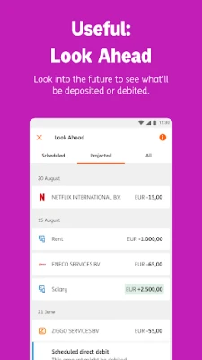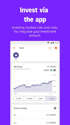 • All-in-one app: payments, savings, loans, investments, credit card and even your ING insurance.