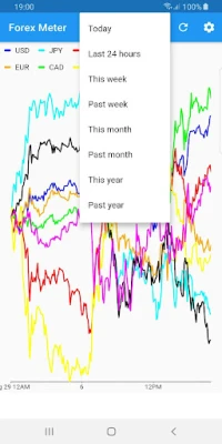 The Forex Strength Meter measures the decorrelated and normalized strength of the major currencies USD (US Dollar), CAD (Canadian Dollar), EUR (Euro), GBP (British Pound), AUD (Australian Dollar), NZD (New Zealand Dollar), JPY (Japanese Yen), and CHF (Swiss Franc). Each currency is shown over a selectable time period (today, last 24 hours, this week, this month, this year, ...).