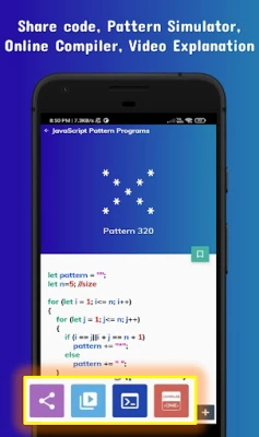 This app is full of pattern and other JavaScript programs. In addition to this, there is a lot of study stuff related to JavaScript as well.