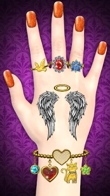 Jewelry Salon it is a great, free application for girls. Dress your hand in the bracelets, rings. Take the chance to design your dream bracelets and rings. In Jewelry Salon you can create your own jewelry designs. Show off your skills and style! In the application you will find many options: many types of bracelets and rings and additionally nails and tattoos on hand. Choose your favorite bracelet and ring and put on it shiny diamonds and pendants. Complete your look with nail polishes. If you are little crazy put a tattoo on hand.