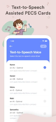 Leeloo also has voice capability. Every card pressed will reveal options of phrases, and the chosen phrase will be read by a text-to-speech robot. You can choose from over 10 voices you like in AAC Speech app Leeloo.