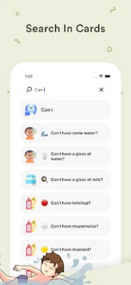 In this app, there is a card for every word that your kid might need to use in daily. And every card is matched with an definitive vector image about the phrase or word your kid trying to communicate.