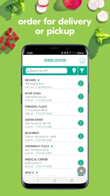 - Order and pay in-app for pick-up or delivery