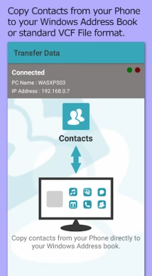 - Export contacts to Windows Contacts, Microsoft Outlook or as a standard VCF contacts file, which can be used in any contacts address book application you may use on your PC.