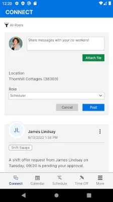 Verint WFM for Branch increases workforce engagement and collaboration with easy to use mobile features. The app is an extension of the core solution. Users can submit time off requests, swap and offer shifts, and set their unavailability preferences on-the-go from their mobile devices. Communication within the organization is made easy through our Connect platform.